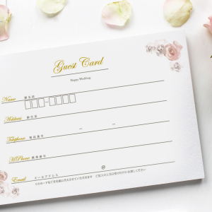 今、卒花嫁さまたちから「買ってよかった」の声続出のゲストカードって知っていますか? ゲストカードとは芳名帳に代わるものとして、最近の結婚式で見られるようになったアイテム。 招待状と同封して、ゲストさまへ送るタイプのゲストカードは 当日の受付がスムーズになるとっても便利なアイテムなんです!!