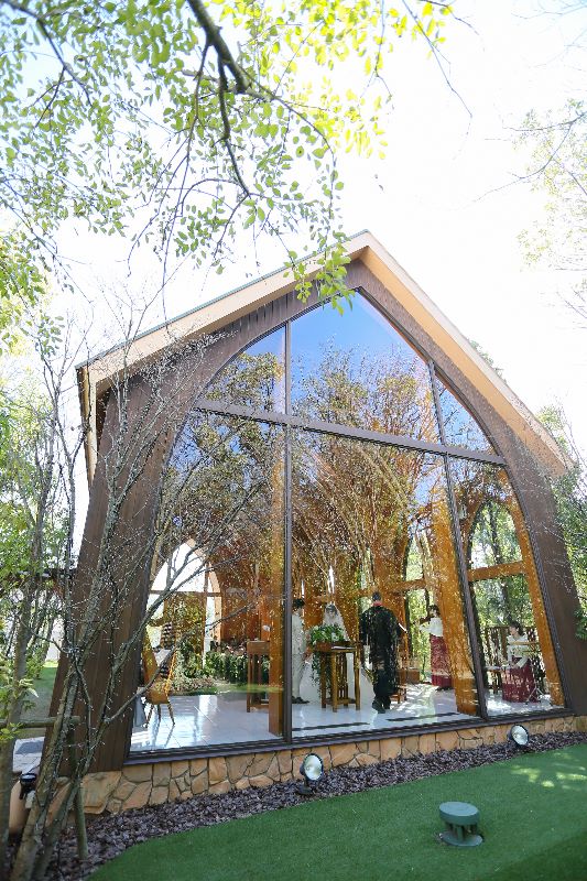 結婚式のテーマは『ナチュラル』です。私たちは、森をイメージした緑の多い会場を作るために披露宴会場の雰囲気にはこだわり、ゲストのみなさんの印象に残る料理にもこだわりました。<br>