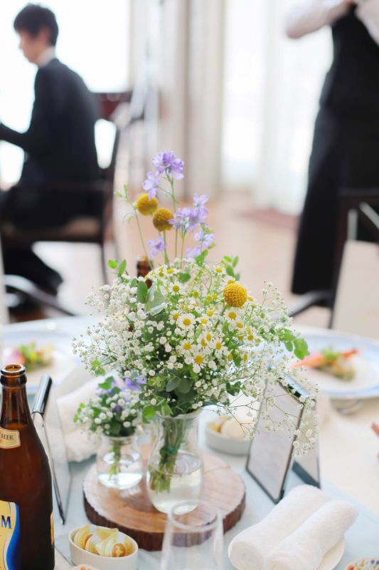 会場コーディネートは、色はティファニーブルー・黄色・白を基調にして、爽やかでラスティックな空間を目指しました。<br>ゲストファーストを重視して、ゲストが楽しめるウェディングに重きを置きました。<br>30代になると結婚式も行き慣れ、新鮮味もなくなるため、写真をなかなか撮ってもらえないと思ったので、写真を撮りたくなるような演出を入れました。