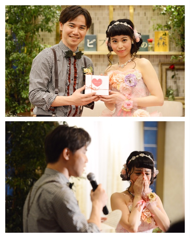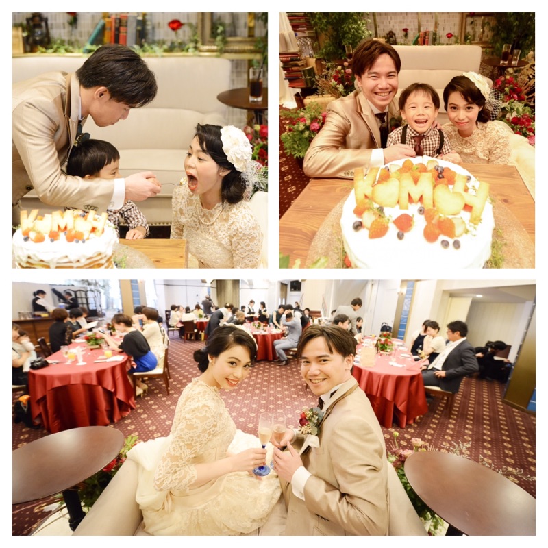 「ビブリアの森」をテーマに、三歳の息子と、ゲストの皆さまと一緒に作り上げたフェスティバル! <br>ビブリアとは、「本を愛する人」という意味です。 <br><br>同じ会社の、ディスク部門である主人と、書店部門である私。 <br>お気に入りのCDや絵本を並べたり、ティピテントを置いてフェス感を出したり、息子やちびっこゲストが楽しめるような仕掛けもたくさん用意しました。<br><br>リングピローを大好きな『らんま1/2』をくり抜いて作ったリングブックにしたり、ブーケトスではなく本を投げる「ブックトス」を行ったりと、本に纏わる演出もたくさん盛り込みました! <br><br>ちびっこゲストには一人一人、年齢や性格を考えて、それぞれ違う本やドリルを用意して、ママゲストの皆さまが安心して楽しめるような工夫もしました。