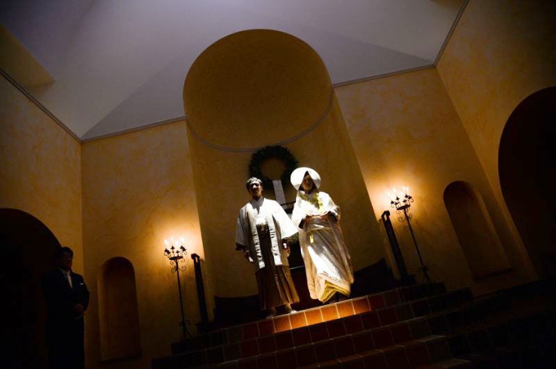 当日までゲストには内緒。チャペルでナチュラルテイストの和装婚