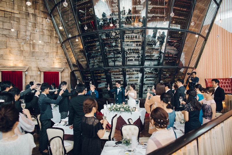 スワロフスキーと大きなワインセラーが煌めく、大人可愛いウェディング