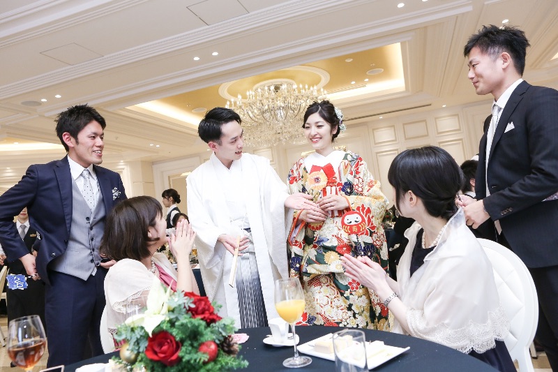 12月の式だったので「ちょっと早いクリスマスパーティーだと思ってゲストみんなに楽しんでもらいたい‼︎」と思い、装花やテーブルクロス、装飾はクリスマス感の出るようにしました。<br>結婚式は新婦がメインになりがちですが、ブーケトスの代わりに新郎がブロッコリートスをしたり、ファーストバイトでは新婦が大きいスプーンで食べたりとちょっと変わった演出をしてゲストにも楽しんでもらえました。