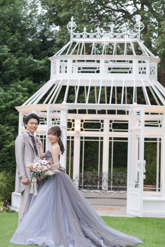 式はロイヤル!お色直しはグレーで大人ナチュラル!二次会は夜景に溶けるキラキラ!です♡そしてアネモネを至る所に散りばめ、式とお色直しで統一感を出しました!ナチュラルウエディングもロイヤルウエディングも味わえて、最高の1日でした。<br>またお色直し後は、どうしてもやりたかった果実酒ラウンドをしました。最後に新郎新婦がリキュールを注ぎ、スイーツビュッフェで振る舞いました。