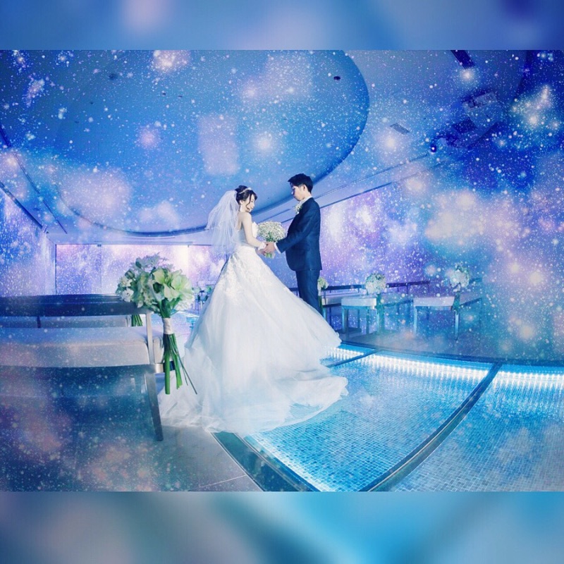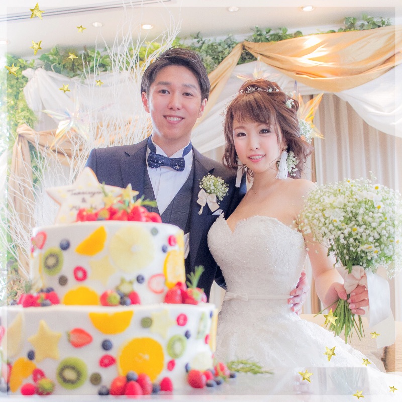 テーマは「星とかすみ草」<br>テーマカラーは「ホワイト・金・オーロラ」<br>ゲストへのサプライズ沢山☆<br>新郎新婦がともにアクセサリー作り&DIYが趣味なので、手作り溢れるナチュラルガーリーな式になりました。