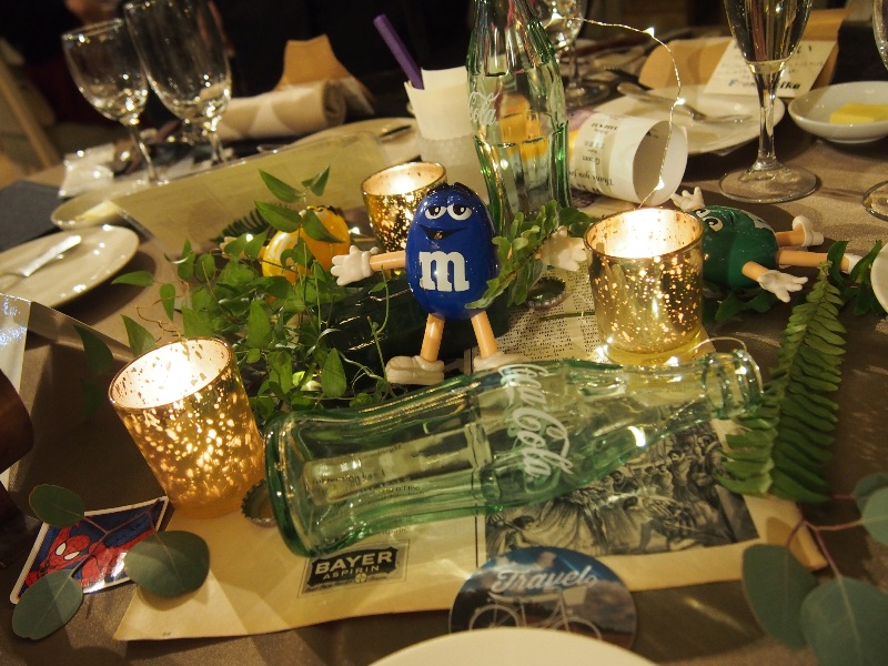 アメリカンヴィンテージウェディング♪〜時々アメリカンジョーク⁈〜をテーマにしました☻⃝<br><br>アメリカンヴィンテージをイメージして、席札はデニムのランチマットに。<br>高砂にも国旗やアメリカン雑貨を置くなどし、雰囲気を統一しました!<br>テーブル席の装飾はm&msの人形を置きました!<br><br>またサブテーマのアメリカンジョークでは、ゲストにいたずらを仕掛けました。<br>[寝坊が多いゲストには目覚まし時計をたくさん置く][ビールが好きなゲストにはビールタワーを]ゲストに合わせたサプライズを考え当日はいろんなところでゲストを楽しませられるよう工夫をしました。