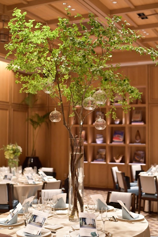 テーマ色は、ゴールド×グリーン×ブルー。ボタニカルを意識した自然溢れるウェディング