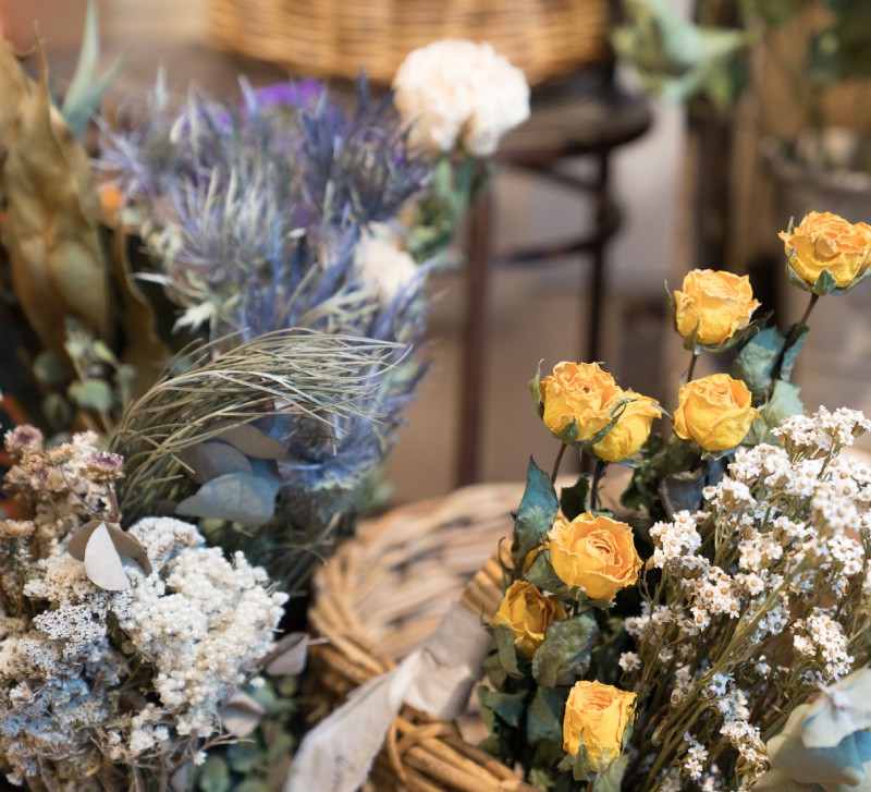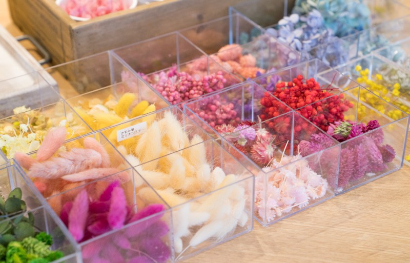 用意した色とりどりの花材の中から、お好きなお花をチョイスして皆さん思い思いの作品に♪