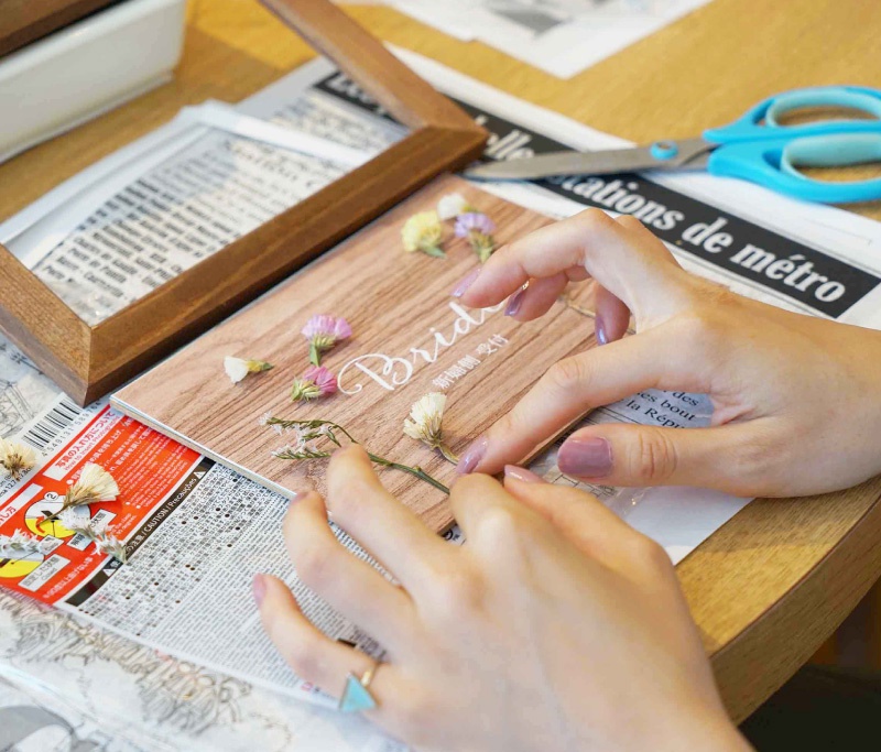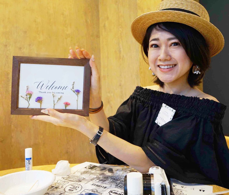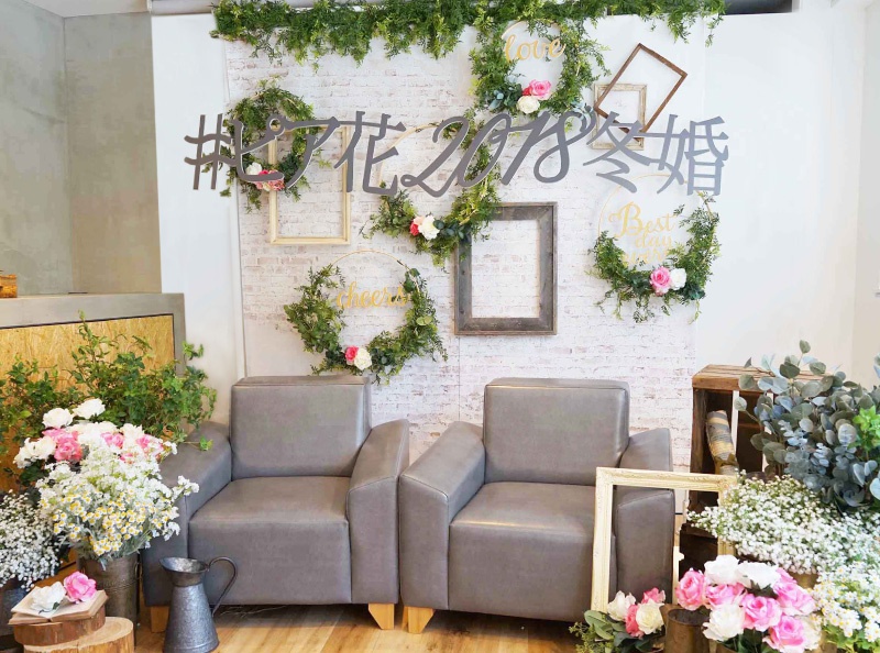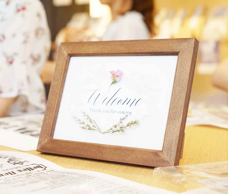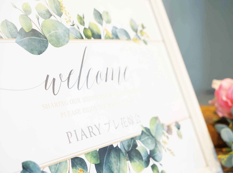 今回のワークショップは、ピア花会では初めての「受付サイン作り」に挑戦!受付台の上に置くと、受付の目印にもなり、さらにオシャレなオブジェとしても使えちゃいます!お花の配置の仕方次第で、皆さまの個性輝く受付サインが完成♪ぜひ当日に使ってくださいね♡