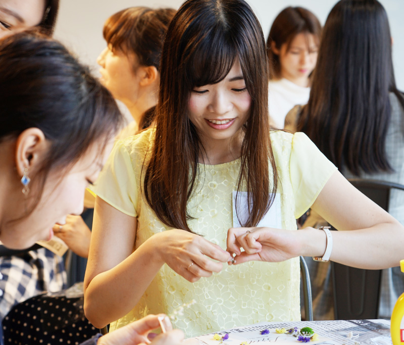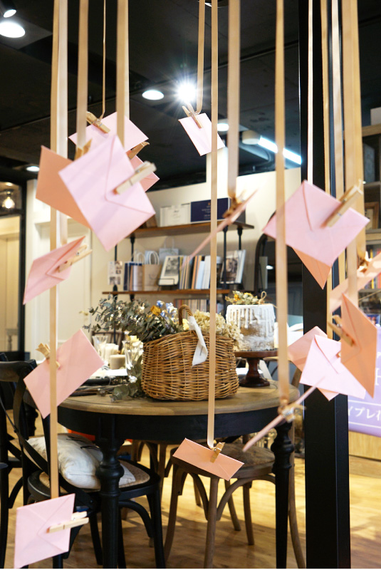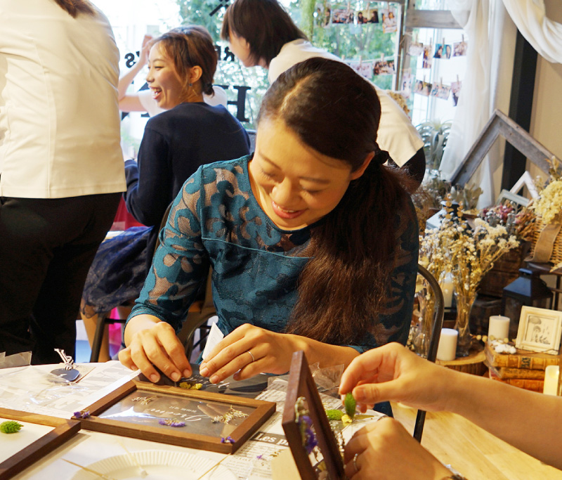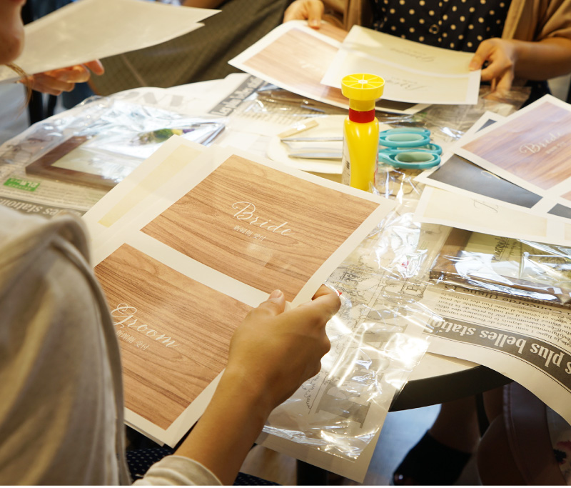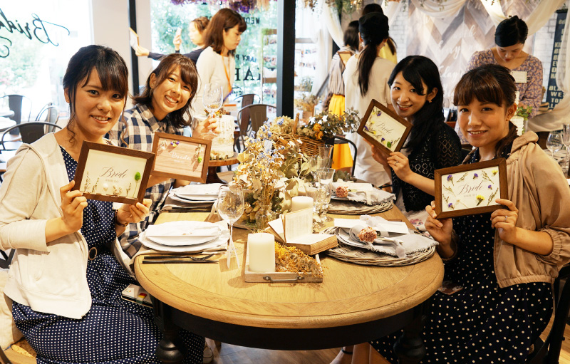 ワークショップは、表参道では初めての受付サイン作りに挑戦!!「どこに置いたら可愛くなるかな?」と、皆さま試行錯誤しながらドライフラワーの位置を決めていました♪ 位置を変えるだけで雰囲気が異なるオリジナル受付サインの完成!!ぜひ当日使ってくださいね♡