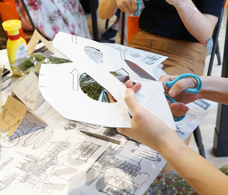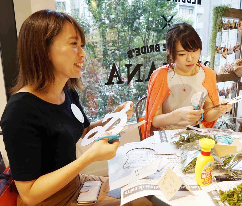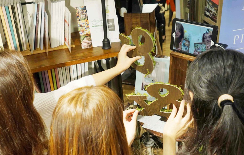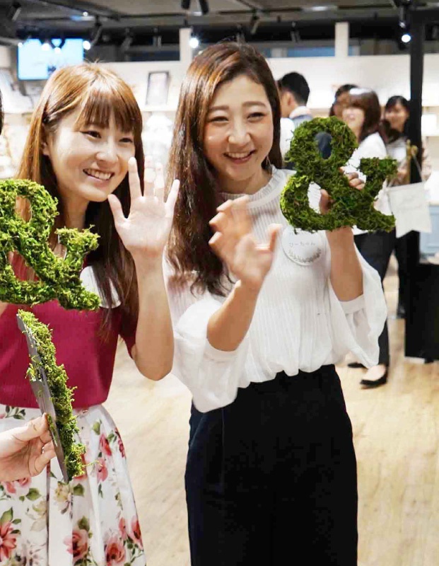ワークショップでは、今話題の&(アンド)オブジェを作成しました!!モス(苔)を使って簡単に作れるので前撮りで使ったり、ウェルカムスペースに飾ったりと、万能アイテム!!今回も名古屋との同時開催ということで、スカイプを通じてお話したりワークショップで作ったものを見せ合ったりしました♡