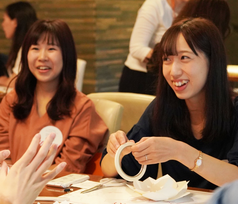 ワークショップはペーパーフラワー作り!花びら型にカットした紙を貼り合わせていくだけで簡単に作れちゃうんです。完成したペーパーフラワーはウェルカムスペースに並べてもオシャレですし、ペーパーストローを付けてフォトプロップスにしても写真映え間違いなし♡ぜひ結婚式当日や前撮りで使ってみてくださいね!