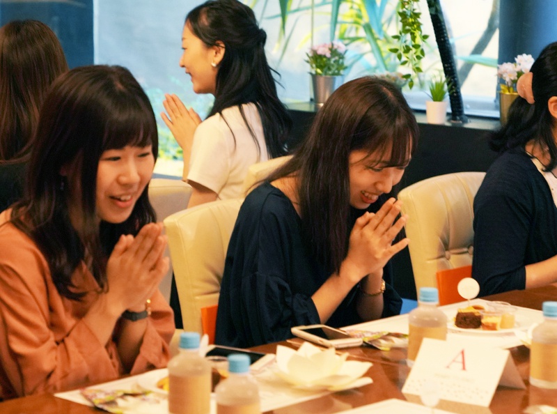 フリートークタイムでは、PIARYで人気の引き菓子を召し上がりながらの花嫁トークに花が咲きます。卒花嫁さまからは「自分と同じ失敗はして欲しくない」と結婚式当日の失敗談をお話ししていただきました。ドレス選びで迷っているプレ花嫁さまが皆さまからアドバイスをいただく場面も。今後の準備に活かせる情報がGETできるのはピア花会ならではですね!