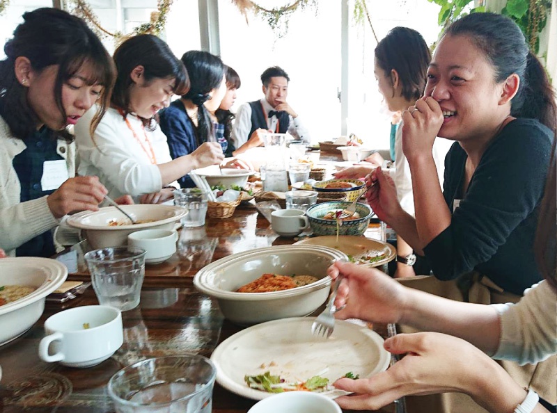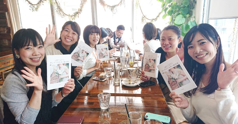 久しぶりのピア花メンバーとの再会でしたがすぐに打ち解け、皆さま自然と笑顔に♪パスタやカレーなど美味しいランチを召し上がりながらの花嫁トークはとまりません♪挙式を2週間後に控えた花嫁さまの準備状況や当日の演出などのお話に、挙式まで時間のある花嫁さまが熱心にメモをとるご様子も。
