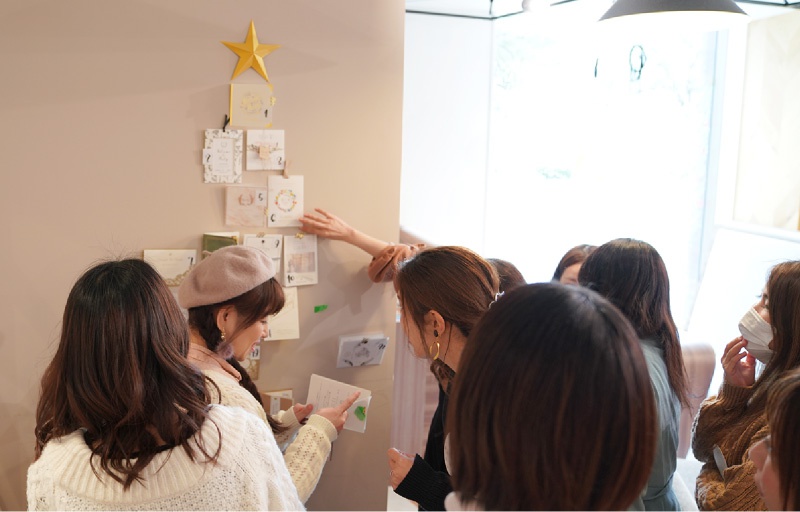フリートークでは、ピアリーのペーパーアイテムを実際に使ってくださった卒花嫁さまから「オシャレでコストも抑えられて使って良かった!」というお話が聞けたり、「ヒキタクは便利!イニシャルスタンプも可愛い」など嬉しいお言葉もたくさんいただきました。卒花嫁さまも参加することによってプレ花嫁さまは参考になる情報が聞けて安心した表情を浮かべる一面も。