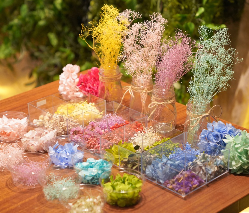 ワークショップは大人気のハーバリウム作りに挑戦!!ピア花会初の二層ハーバリウムは花嫁さまから大好評♡