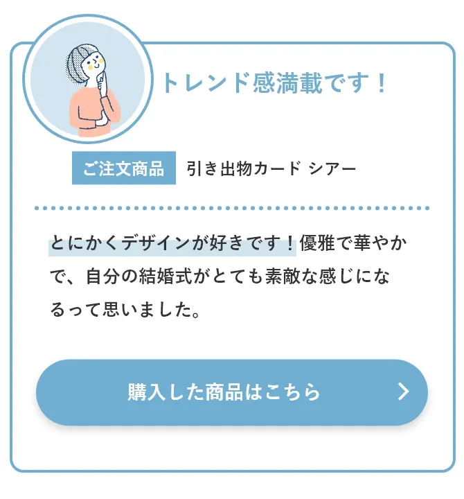 なんとカード自体に写真や名前、挙式日を入れて オリジナルの引き出物カードにできるんです😳✨デザインがとくにかく豊富で、絶対自分の好きなデザインを見つけて作ることができると思います!