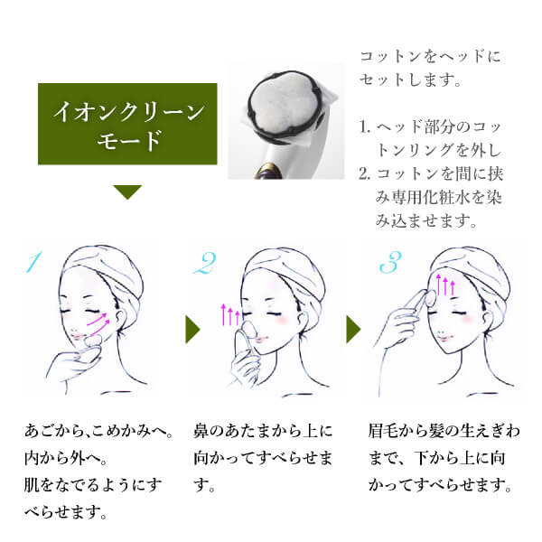 | 内容 | 本体・専用ポーチ・ACアダプター・USBケーブル・ION用COTTON5枚・コットンセット用リング・取扱説明書兼保証書 |