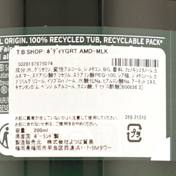 【20%OFF】【ワケあり/撮影時に開封済】ザ ボディショップ ボディヨーグルト AM(アーモンドミルク)200ml|コスメ・美容ならPIARY(ピアリー)