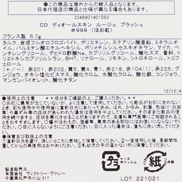 【16%OFF】【ワケあり/撮影時に開封済】クリスチャン ディオール スキンルージュ ブラッシュ #999 サテン|コスメ・美容ならPIARY(ピアリー)
