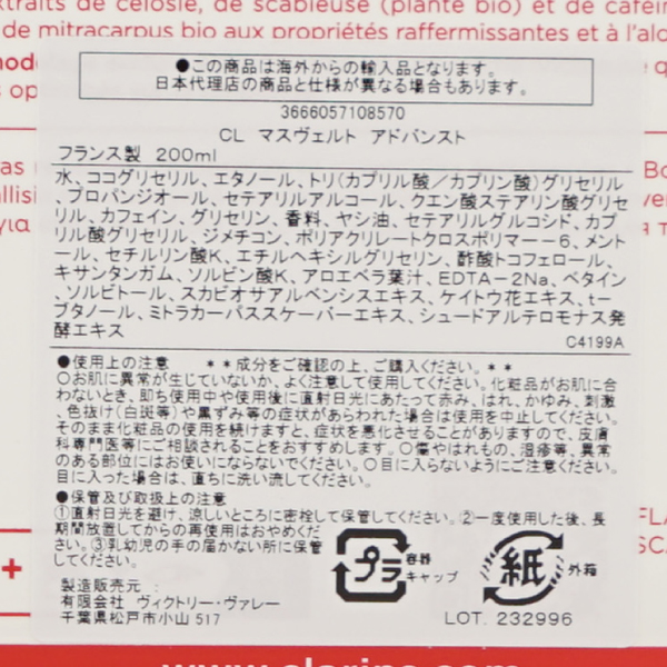 【21%OFF】クラランス マスヴェルト アドバンスト 200ml|コスメ・美容ならPIARY(ピアリー)