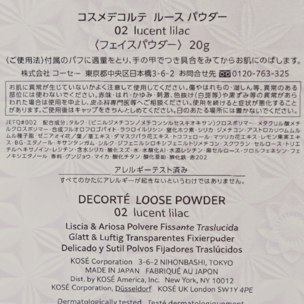 【6%OFF】コスメデコルテ ルースパウダー #02 lucent lilac|コスメ・美容ならPIARY(ピアリー)