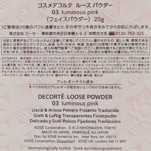 【6%OFF】コスメデコルテ ルースパウダー #03 luminous pink|コスメ・美容ならPIARY(ピアリー)