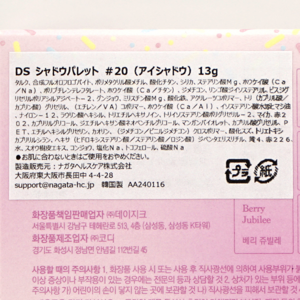 | 内容 | ■ブランド デイジーク / dasique ■内容量 7g ■ご使用方法 指やブラシで適量を取り、まぶたに優しく塗布してください。 ■成分 タルク/マイカ/ホウケイ酸(Ca/チタン)/酸化チタン/ホウケイ酸(Ca/Na)/酸化鉄/窒化ホウ素/ビスジグリセリルポリアシルアジペート-2/ポリブチレンテレフタレート/オクテニルコハク酸デンプンAl/シリカ/ジフェニルシロキシフェニルトリメチコン/トリ(カプリル酸/カプリン酸)グリセリル/リンゴ酸ジイソステアリル/ポリプロピレン/合成フルオロフロゴパイト/ホウケイ酸(Ca/Al)/ミリスチン酸Mg/ナイロン-12/ステアリン酸Mg/メチルプロパンジオール/ダイマージリノール酸(フィトステリル/イソステアリル/セチル/ステアリル/ベヘニル)/ラウリン酸ヘキシル/トリイソステアリン酸ポリグリセリル-2/ダイマージリノール酸ダイマージリノレイルビス(ベヘニル/イソステアリル/フィトステリル)/アクリレーツコポリマー/(ビニルジメチコン/メチコンシルセスキオキサン)クロスポリマー/マンガンバイオレット/(エチレン/VA)コポリマー/オクチルドデカノール/プロパンジオール/トリエチルヘキサノイン/ダイマージリノール酸水添ヒマシ油/ジメチコン/マカデミア種子油/グルタチオン/グンジョウ/パルミチン酸エチルヘキシル/(ジメチコン/ビニルジメチコン)クロスポリマー/ヘキサ(ヒドロキシステアリン酸/ステアリン酸/ロジン酸)ジペンタエリスリチル/酸化スズ/サラソウジュ種子脂/ステアリン酸ジメチコノール/水酸化Al/ラウロイルリシン/水添ポリイソブテン/黄4/カオリン/メチコン/ジステアルジモニウムヘクトライト/セラミドNP/黄5/炭酸プロピレン/(エチレン/プロピレン/スチレン)コポリマー/(ブチレン/エチレン/スチレン)コポリマー/テトラ(ジ-t-ブチルヒドロキシヒドロケイヒ酸)ペンタエリスリチル ※商品の改良や表示方法の変更などにより、実際の成分と一部異なる場合があります。実際の成分は商品の表示をご覧ください。 |
