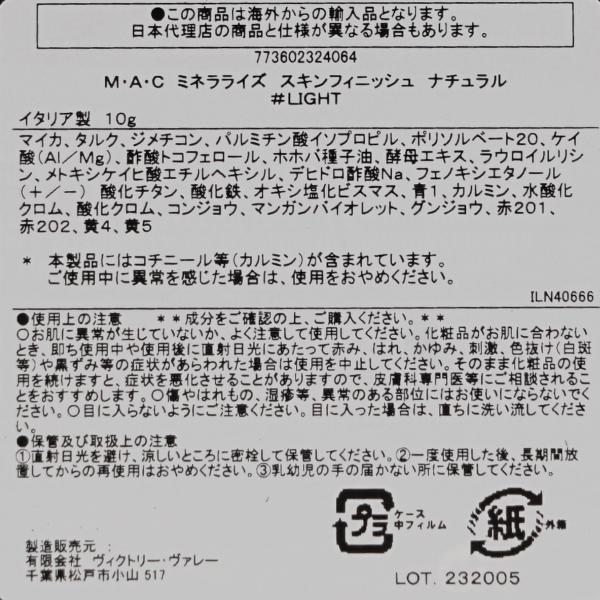 【17%OFF】【ワケあり/撮影時に開封済】MAC ミネラライズ スキンフィニッシュナチュラル #ライト|コスメ・美容ならPIARY(ピアリー)