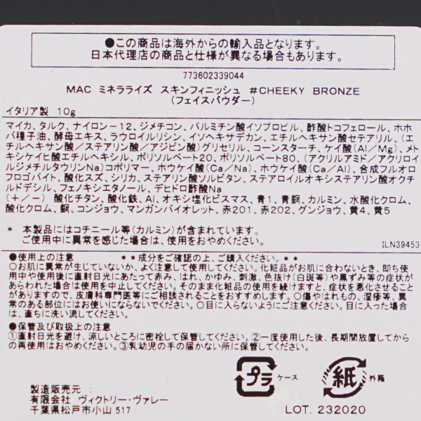 【16%OFF】【ワケあり/撮影時に開封済】MAC ミネラライズ スキンフィニッシュ #チーキー ブロンズ|コスメ・美容ならPIARY(ピアリー)