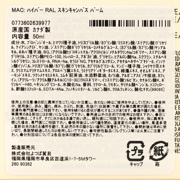 【19%OFF】【ワケあり/撮影時に開封済】MAC ハイパー リアル スキンキャンバス バーム 50ml|コスメ・美容ならPIARY(ピアリー)