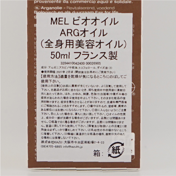 | 内容 | ■ブランド メルヴィータ / Melvita ■内容量 50ml ■ご使用方法 洗顔後すぐ、化粧水など普段のお手入れの前に適量を顔になじませます。髪や手など全身にもお使いいただけます。 ■成分 アルガニアスピノサ核油*/トコフェロール/ダイズ油 *オーガニック栽培による植物原料を使用した成分です。 ※商品の改良や表示方法の変更などにより、実際の成分と一部異なる場合があります。実際の成分は商品の表示をご覧ください。 |