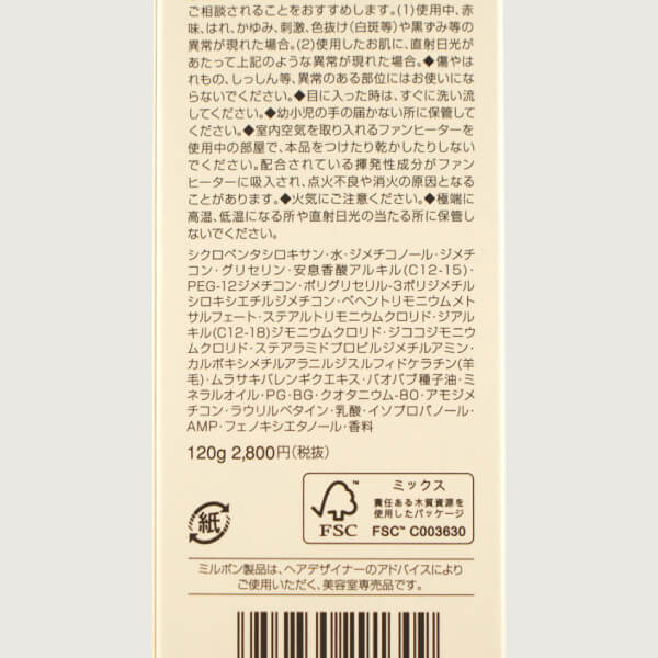 | 内容 | ■ブランド ミルボン / MILBON ■内容量 120g ■ご使用方法 1.タオルドライ 髪の水気をしっかり取ります。左右半分に分け、毛先、中間の順序でつけていきます。 2.手にのばす 使用量の半分を手に取り、手のひら、指先、指の間までしっかり均一にのばします。 3.中間〜毛先につける 中間〜毛先に指を通しながら塗布し、毛先をまとめるように指を通しながら乾かします。 ■成分 シクロペンタシロキサン/水/ジメチコノール/ジメチコン/グリセリン/安息香酸アルキル(C12-15)/PEG-12ジメチコン/ポリグリセリル-3ポリジメチルシロキシエチルジメチコン/ベヘントリモニウムメトサルフェート/ステアルトリモニウムクロリド/ジアルキル(C12-18)ジモニウムクロリド/ジココジモニウムクロリド/ステアラミドプロピルジメチルアミン/カルボキシメチルアラニルジスルフィドケラチン(羊毛)/ムラサキバレンギクエキス/バオバブ種子油/ミネラルオイル/PG/BG/クオタニウム-80/アモジメチコン/ラウリルベタイン/乳酸/イソプロパノール/AMP/フェノキシエタノール/香料 ※商品の改良や表示方法の変更などにより、実際の成分と一部異なる場合があります。実際の成分は商品の表示をご覧ください。 |