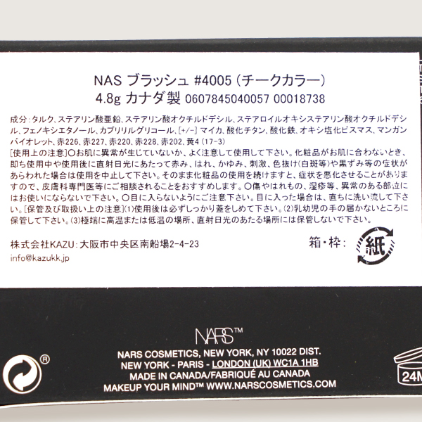 【19%OFF】【ワケあり/撮影時に開封済】ナーズ ブラッシュ #4005 AMOUR|コスメ・美容ならPIARY(ピアリー)