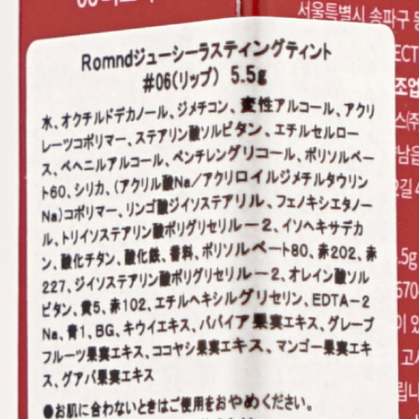 | 内容 | ■ブランド ロムアンド / rom&nd ■内容量 5.5g ■成分 水/グリセリン/セテアリルアルコール/ヒマワリ種子油/シア脂/(カプリル酸/カプリン酸)ヤシアルキル/タピオカデンプン/スミノミザクラ果実エキス/ヤシ油/キサンタンガム/(アクリル酸ヒドロキシエチル/アクリロイルジメチルタウリンNa)コポリマー/セテアレス-33/カプリリルグリコール/セタノール/エチルヘキシルグリセリン/カプリル酸グリセリル/イソステアリン酸ソルビタン/ポリソルベート60/PG/トコフェロール/香料 ※商品の改良や表示方法の変更などにより、実際の成分と一部異なる場合があります。実際の成分は商品の表示をご覧ください。 |