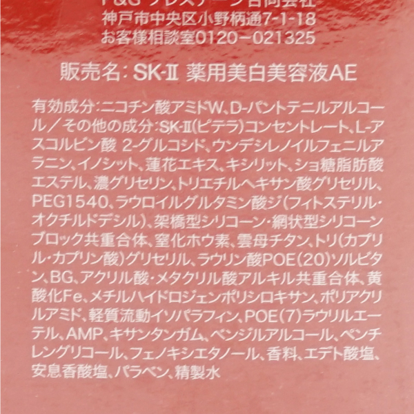 | 内容 | ■ブランド エスケーツー / SK-II ■内容量 50ml ■ご使用方法 1、スポイトで美容液を手のひらに取ります。顔全体の適量は1プッシュです。 2、美容液を気になる部分にのせ、顔全体にのばします。 3、手のひらを使って優しく包み込むようになじませます。 |