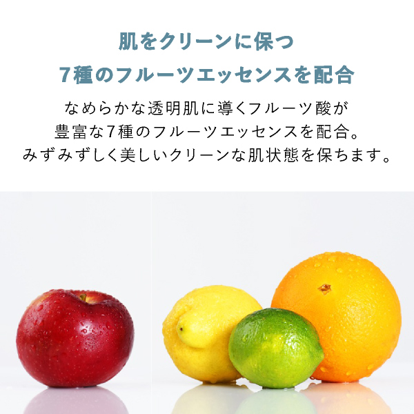 プッシュするだけでクリーミーな濃密泡が出てくるフォーミングウォッシュ。ただ汚れをオフするだけでなく、不要な角質や肌のよどみまでしっかり落とします。なめらかな透明肌に導くフルーツエッセンスや、天然保湿因子NMFが豊富な三重県産の米から醸造された日本酒エキスを配合し、洗いあがりはしっとりとしたクリアな肌に導きます。