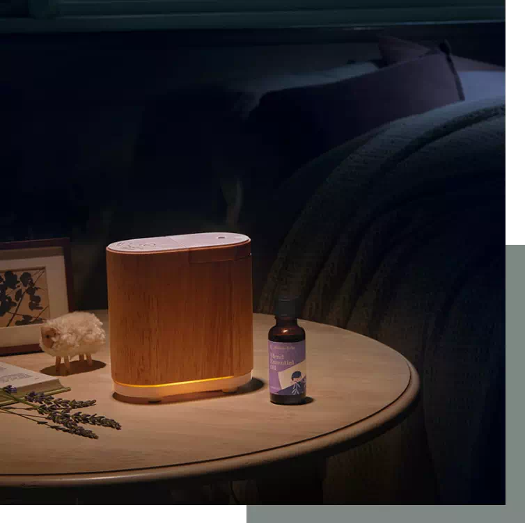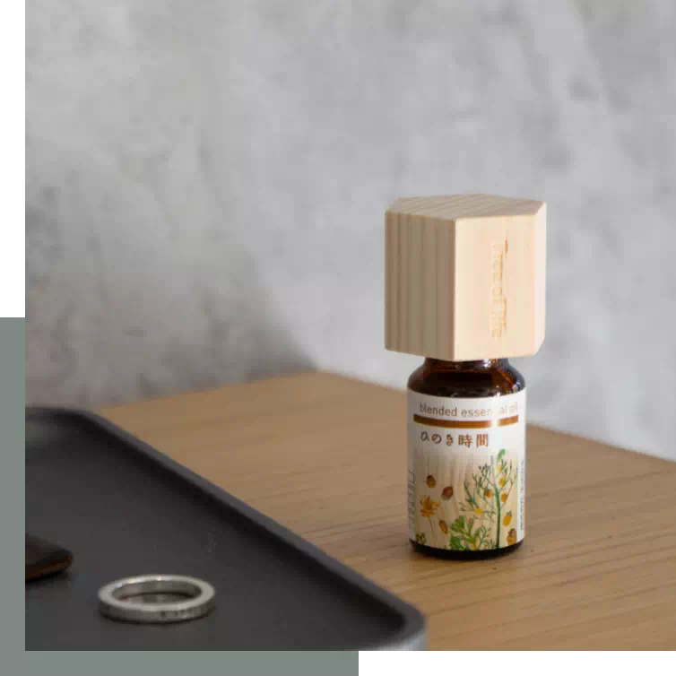 エッセンシャルオイル(精油)瓶のキャップと付け替え、瓶をそっと傾けると優しくアロマが広がります。枕元やデスク周りなど、パーソナルスペースでふんわり香ります。アロマをはじめて使う人はもちろん、プレゼントにもおすすめです。