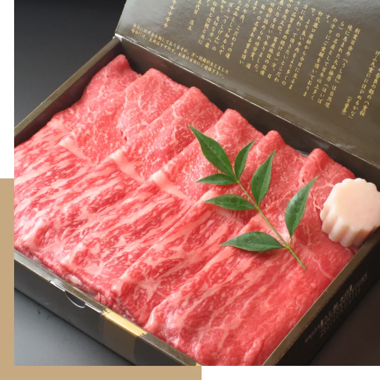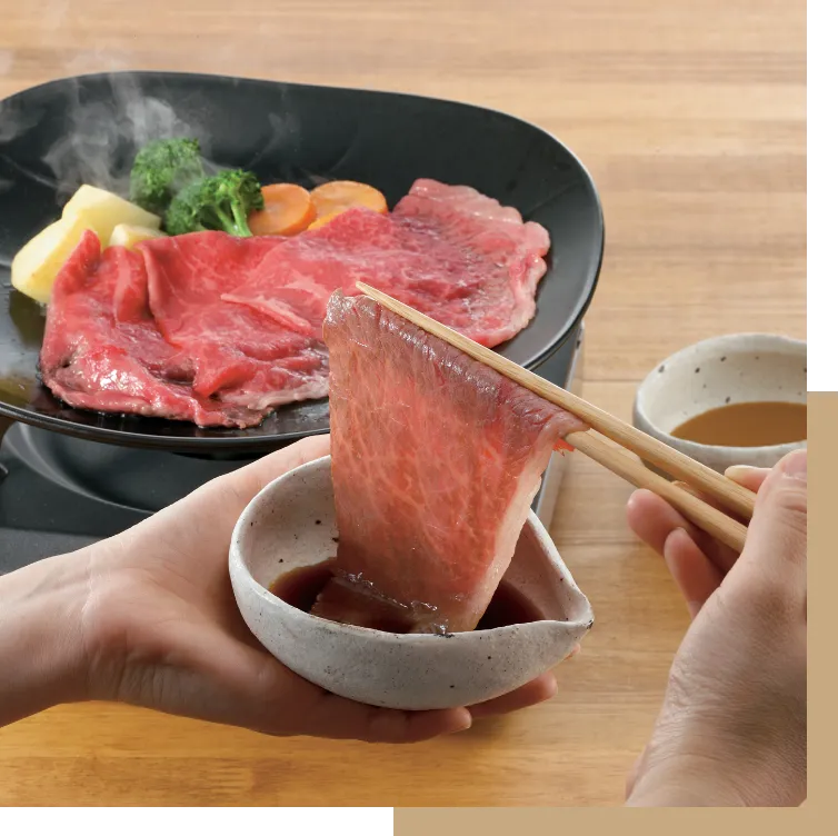 とろけるような触感と芳醇な香りは多くのお客様に永く愛されています。霜降り肉ならではの旨味と甘みを