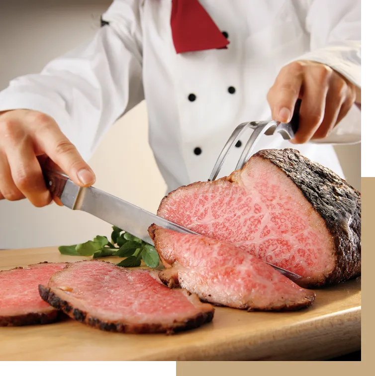 厳選しこだわりの飼料で生み出された、均一に入る「霜降り」は、繊細で甘みのある脂を持ち、舌の上で柔らかくとろける食感を楽しませてくれます。