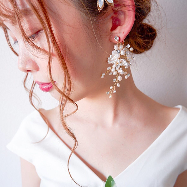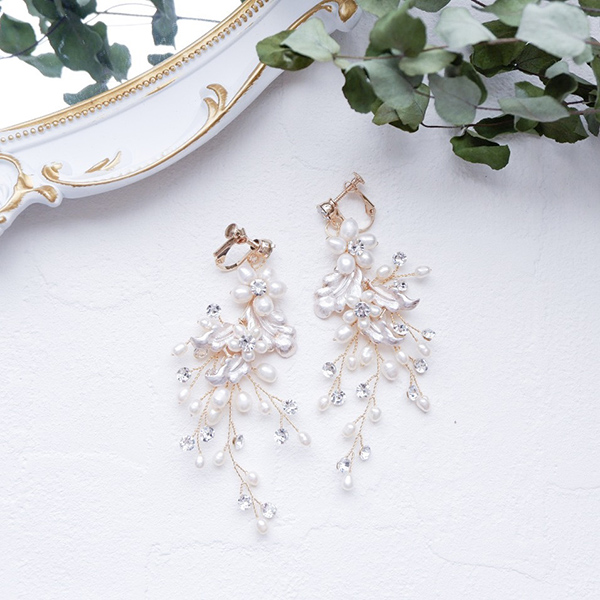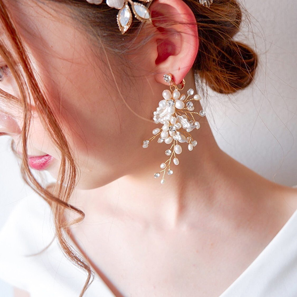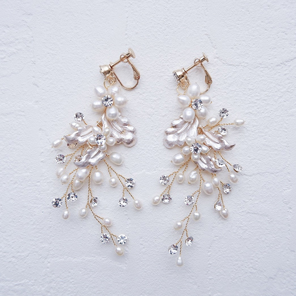 とても豪華な小枝イヤリングで、たくさんのパールとリーフデザインがとてもキュート!