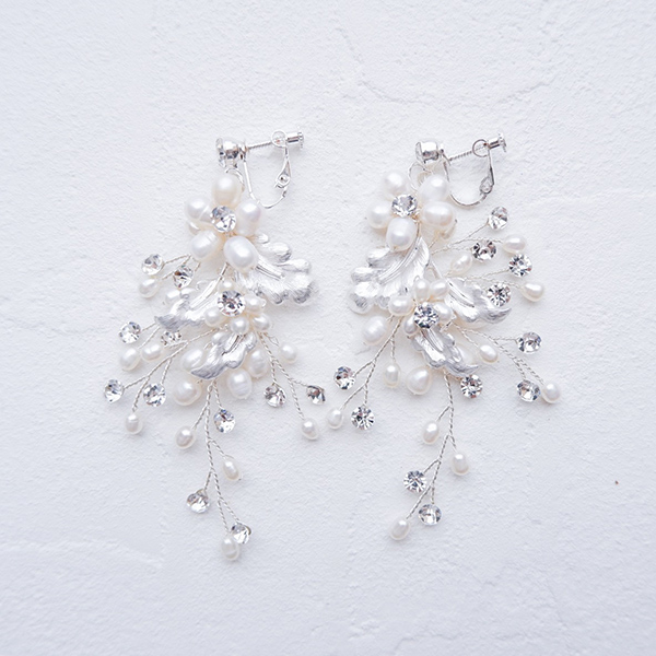 とても豪華な小枝イヤリングで、たくさんのパールとリーフデザインがとてもキュート!
