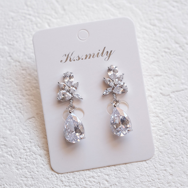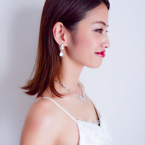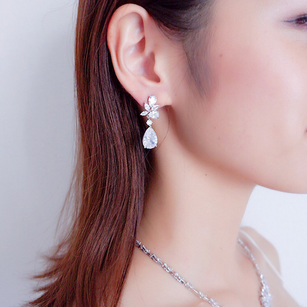 小ぶりのジルコニアイヤリングでヘッドドレスやネックレスにも合わせてご利用いただけます。