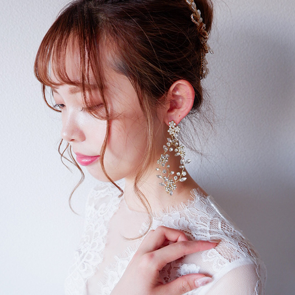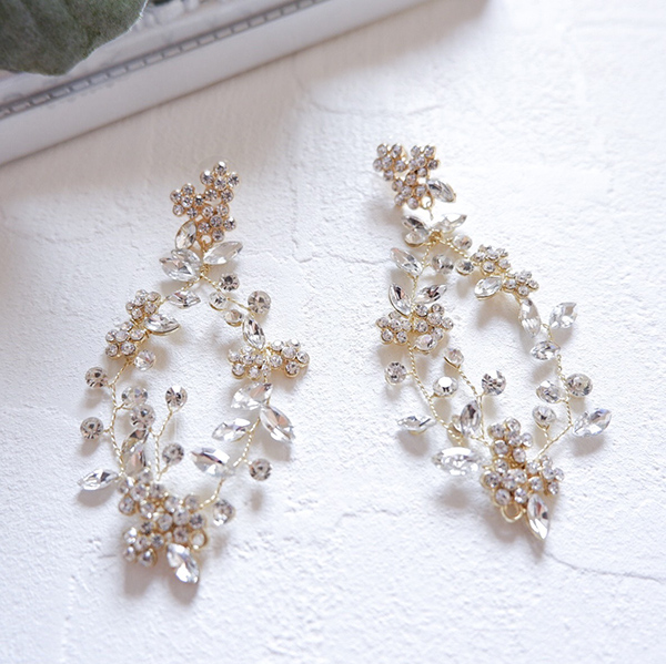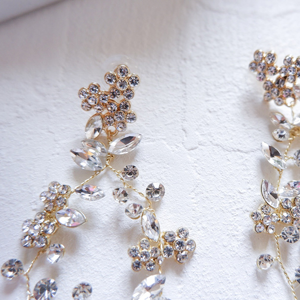 【送料無料】メール便 ウェディングイヤリング 小枝イヤリング フラワー ビジュー リーフ ゴールド i9|ウェディング・ブライダルアクセサリーならPIARY(ピアリー)