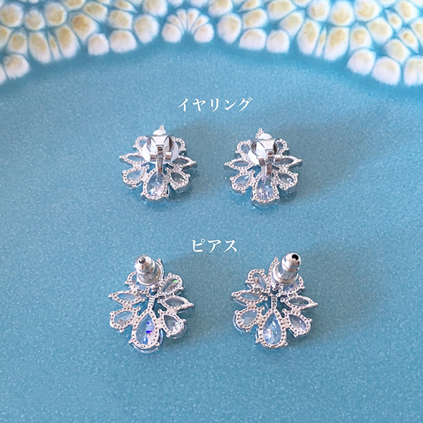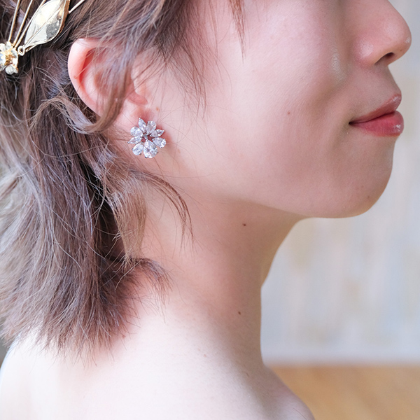 ビジューとクリスタルのデザインがとても綺麗な輝きをしたブライダルイヤリングです。