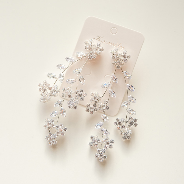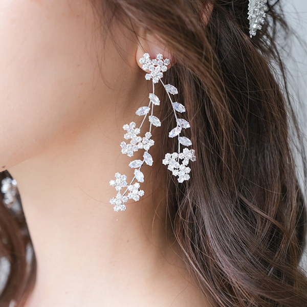 【送料無料】メール便 ウェディングイヤリング ジルコニア フラワーシルバー n15|ウェディング・ブライダルアクセサリーならPIARY(ピアリー)