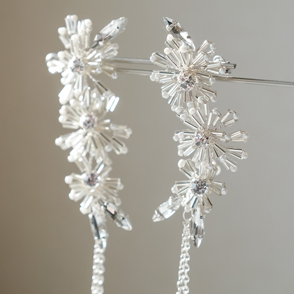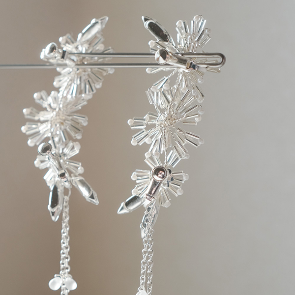 たくさんのビーズやラインストーン使ったデザイン。どんなドレスにも似合うシルバーカラー。