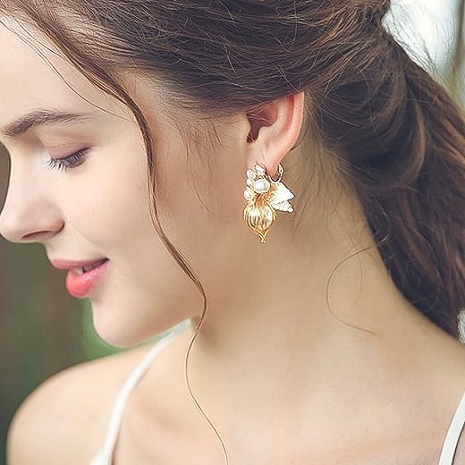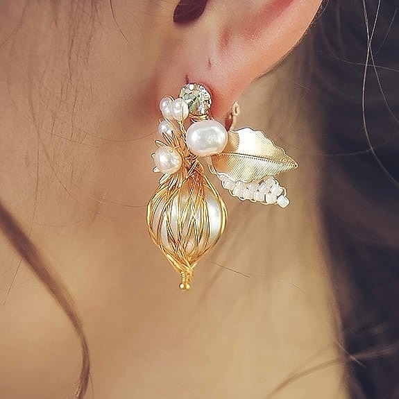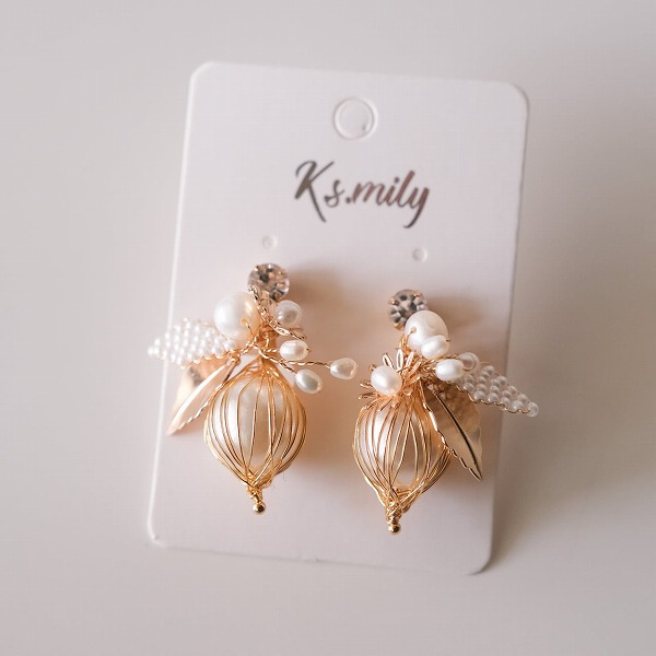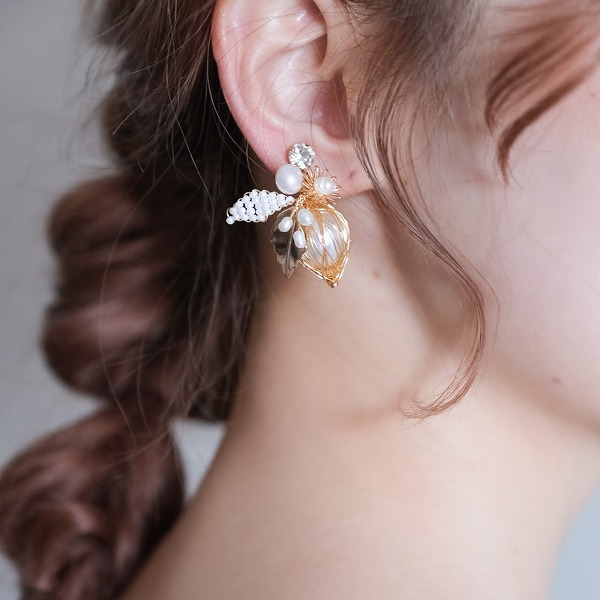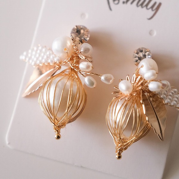 【送料無料】メール便 ブライダル イヤリング ビーズ パール ゴールド u9|ウェディング・ブライダルアクセサリーならPIARY(ピアリー)