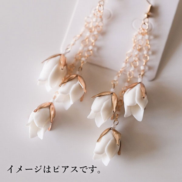 【送料無料】メール便 ブライダル イヤリング ホワイト ゴールド つぼみ u6|ウェディング・ブライダルアクセサリーならPIARY(ピアリー)