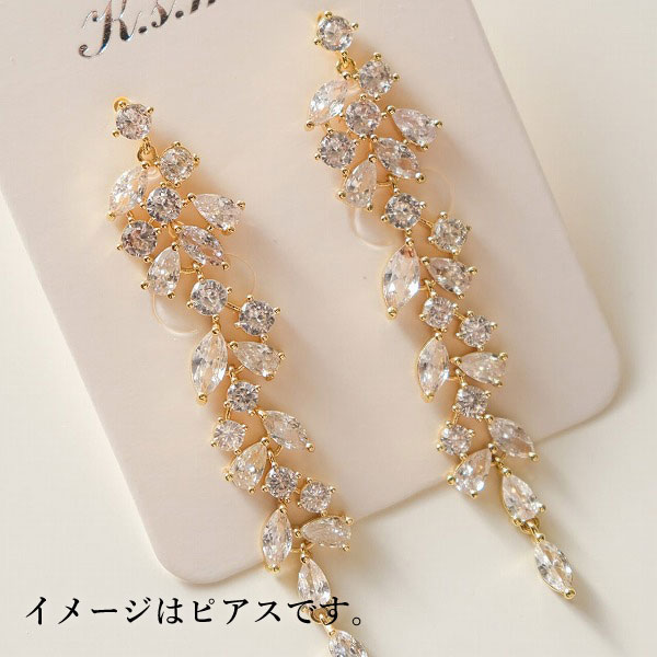【送料無料】メール便 ジルコニア ビジュー ウェディング ブライダル イヤリング ゴールド s14|ウェディング・ブライダルアクセサリーならPIARY(ピアリー)